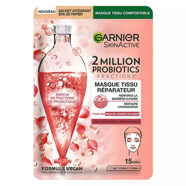 Garnier Skin Active Masque Tissu Réparateur 2 Million Probiotics 22g diffuse 2 Millions de fractions de probiotiques pour visiblement réparer votre peau. Il répare la barrière cutanée et restaure l'hydratation pour une peau éclatante de santé !Indications