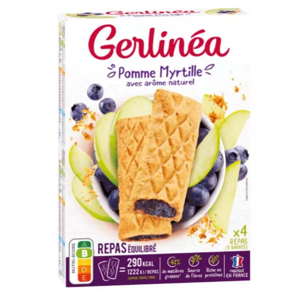 Gerlinéa Repas Minceur Barre 8 unités sont 2 barres à la pomme et à la myrtille substitut de repas.