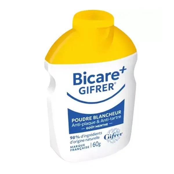 Sviluppato dai laboratori Gifrer, Bicare Gifrer plus è una polvere dentifricia mentolata per l'igiene orale utilizzata per lo sbiancamento dei denti, grazie alla presenza, tra gli altri elementi, di bicarbonato di sodio. La polvere agisce direttamente contro la placca presente sui denti e sulla colorazione dovuta all'uso di tè, caffè o tabacco. Il suo utilizzo previene anche la formazione del tartaro.