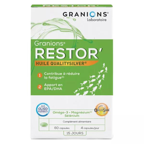 Descrizione ico-chevron-down Granions Restor's 60 capsule è un integratore alimentare a base di Omega-3 e Omega-6 così come anche di oligo-elementi essenziali come il magnesio e il selenio.