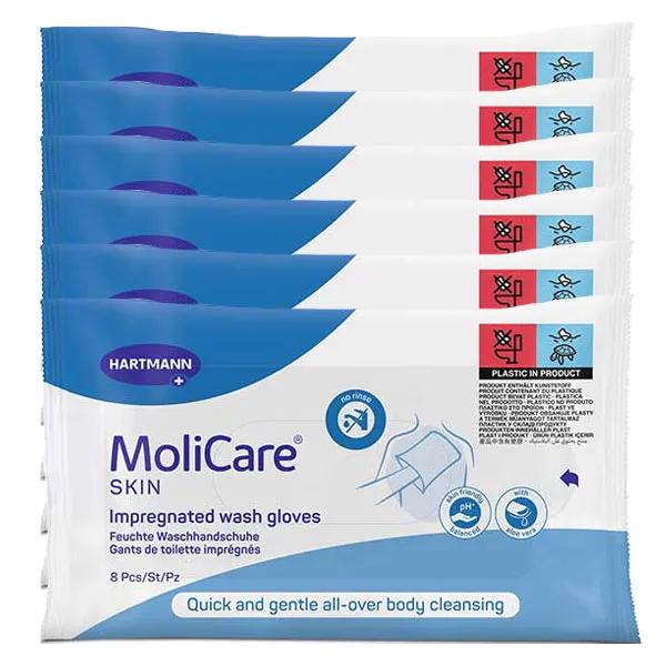 6 x Hartmann MoliCare Skin Guanti da Bagno Impregnati 8 unità