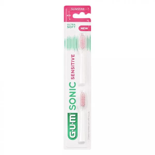 Gum Brosse à Dents Electrique N°4111 Sonic Sensitive Recharge Ultra Soft 2 unités sont des têtes de brosse à dents compatibles avec la brosse à dents électrique GUM Sonic Sensitive.