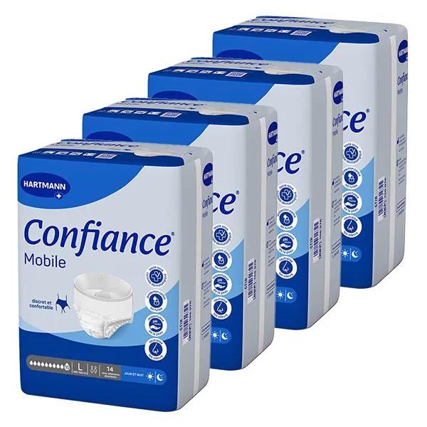 Hartmann Confiance Mobile Absorption 10 Gocce - Taglia L - Confezione da 14 Mutandine da 4combina efficacia, comfort e discrezione. Queste mutande assorbenti sono progettate per le persone che soffrono di perdite urinarie da moderate a abbondanti, preservando la libertà di movimento.