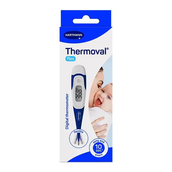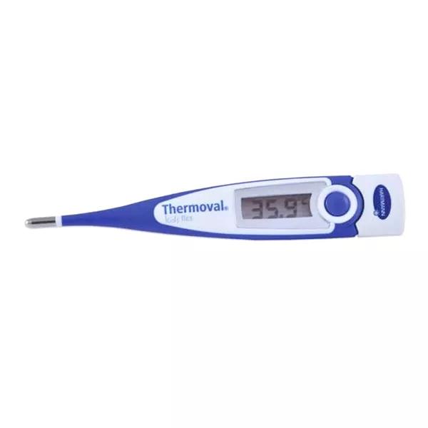 Il termometro digitale Thermoval Kids Flex da laboratori di Hartmann è un termometro digitale superveloce appositamente predisposto per presa di temperatura di neonati e bambini, orali, rettale o ascellare modo. La temperatura viene visualizzata sullo schermo digitale dopo 10 secondi. Un segnale acustico ti dice quando la misurazione è completata. Questo termometro è impermeabile e disinfettabile. Conserva in memoria l'ultima temperatura misurata in modo da poter facilmente confrontare con la nuova temperatura. Inoltre, ha una punta flessibile che impedisce il vostro bambino per sentire un qualsiasi disagio o dolore. Questo termometro è il dispositivo ideale per i genitori che vogliono il massimo comfort e affidabilità per il loro bambino.