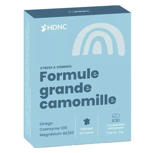 HDNC Formule Migraines 30 comprimés est un complément alimentaire contenant de la camomille, du ginkgo, du magnésium et des vitamines B2 et B3.