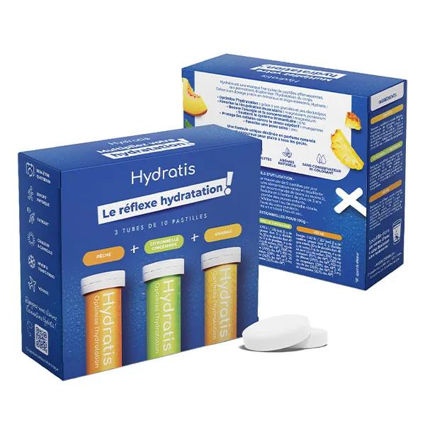 Hydratis Mini Pack è il tuo alleato per l'idratazione estiva, ovunque tu sia. 3 mini-tubetti da 10 pastiglie per un'idratazione ottimizzata, anche in movimento. Ogni pastiglia aumenta l'assunzione di elettroliti per un migliore recupero, meno affaticamento e un maggiore supporto immunitario. Mini formato, massima efficacia.