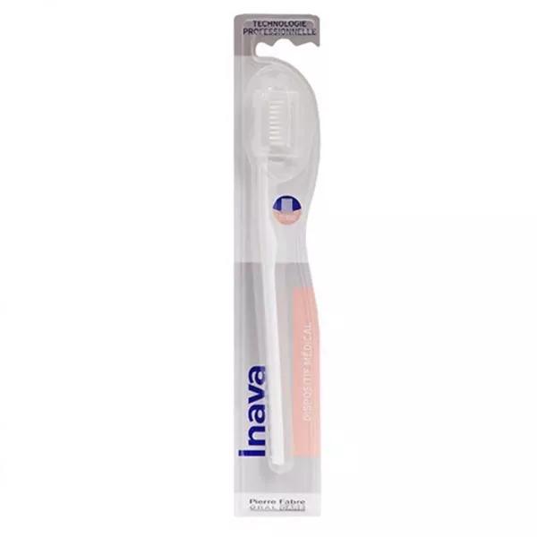 Inava Brosse à Dents 7/100 Post Opératoire est destinée au brossage des dents des personnes souffrant de gingivites et parodontites ulcéro-nécrotiques, de dermatoses bulbeuses, de lésions desquamatives érosives ou de mucites radio ou chimio induites.