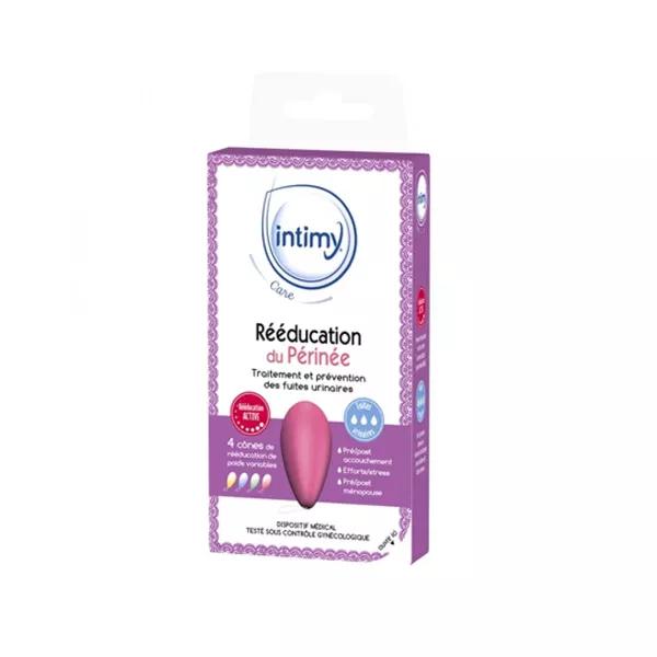 Intimy kit de Rééducation du périnée est composé de 4 cônes de poids différents qui permettent un entraînement actif du périnée grâce au phénomène de rétroaction biologique : entraîné par son poids, le cône va avoir tendance à glisser vers l’extérieur du vagin.