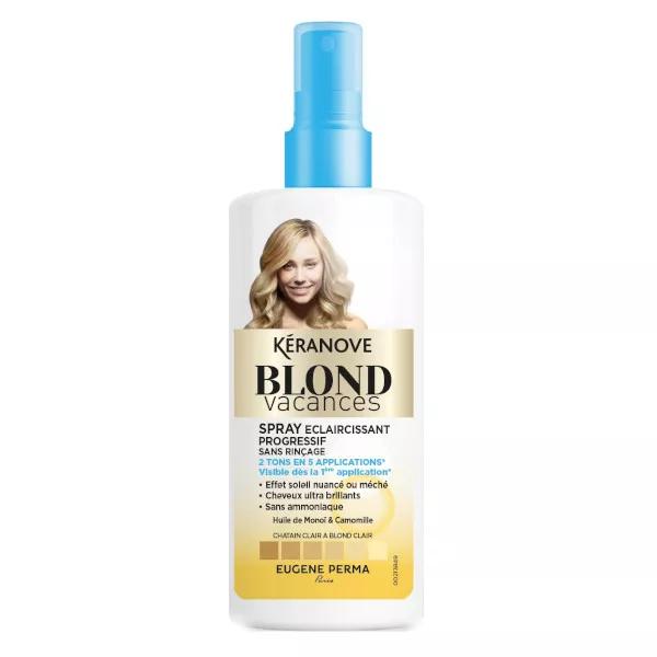 Kéranove Blond Vacances Spray Eclaircissant 125ml est un spray sans rinçage pour éclaircir légèrement et progressivement les cheveux