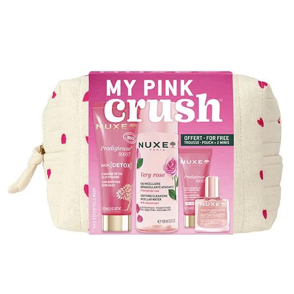 Immergiti nel delizioso mondo del kit My Pink Crush*, una selezione dei nostri prodotti essenziali Nuxe per vedere la vita attraverso lenti color rosa!
