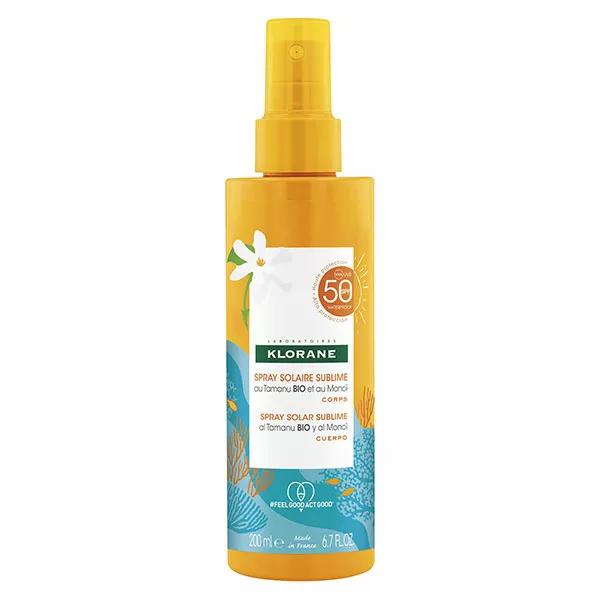 Klorane Monoï & Tamanu Spray Solaire Sublime Corps SPF50 200ml est un spray solaire haute protection pour le corps.