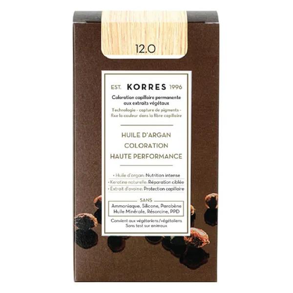 Korres Capillaire Coloration Permanente Blond Spécial 12.0 est enrichie en huile d'argan et kératine naturelle pour renforcer la fibre capillaire et les protéger des agressions quotidiennes.