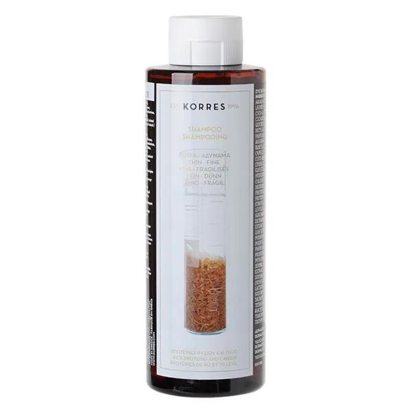 Korres Capillaire Shampooing Cheveux Fins 250ml donne du ressort et un volume durable pour les cheveux finsIdéal pour les cheveux fins, mous, fragiles et sans volume.Contient 86,80% d'ingrédients d'origine naturelle.Actions :- Protéines de riz : augmente l'élasticité et la densité des cheveux, donne du volume- Tilleul : forme un film protecteur à la surface des cheveux améliorant leur brillanceRésultats :Cheveux plus denses, plus brillants, avec du volume.Indications