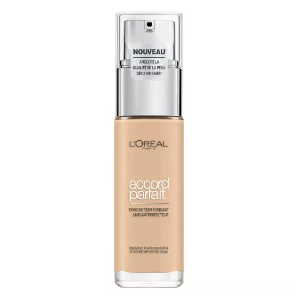 L'Oréal Paris Accord Parfait Fond de Teint Fondant Unifiant Perfecteur 1.5N Lin 30ml s'accorde parfaitement à votre peau et unifie votre teint.