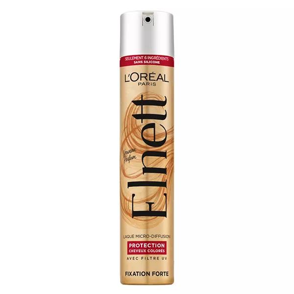 La tenue et la finesse de la laque iconique Elnett à la diffusion ultra fine apportent la touche finale à votre style au quotidien. Pour une tenue indétectable pendant 48h*. Notre nouvelle formule pour cheveux colorés fixation forte enrichie en filtre UV permet 48h de tenue indétectable *. Elle protège vos cheveux de l'humidité pour une couleur pleine d'éclat, un mouvement naturel et des cheveux brillants. Sans 6 ingrédients. Sans silicone. Pour un toucher doux et une fixation qui s'élimine au plus léger brossage. *tests instrumentauxIndications