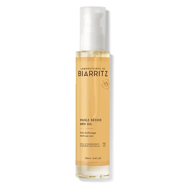 L'Huile sèche sublime certifiée bio des Laboratoires de Biarritz allie deux actifs marins (algue brune et criste marine) à quatre huiles végétales bio (cameline, tournesol, prune et chanvre). C'est LE geste beauté sensoriel ultime pour le visage, le corps et les cheveux ! Tous les ingrédients qui entrent dans la composition de sa formule ont des propriétés reconnues pour nourrir, sublimer et régénérer la peau et les cheveux. On l'aime pour son toucher sec qui ne laisse pas de film collant sur la peau. Sa fragrance iconique s'ouvre sur des notes de zeste de citron, se poursuit sur des notes de pulpe de fruits exotiques, de fleur de tiaré et d'ylang-ylang, pour s'achever en douceur sur la vanille des îles : un véritable parfum d'exception.Indications