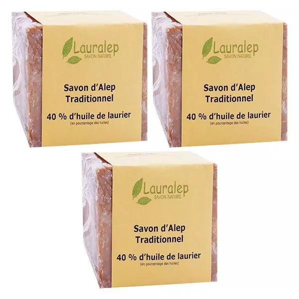 Lauralep Sapone d'Alep Tradizionale 40% d'Olio de'Alloro Lotto di 3 x 200g