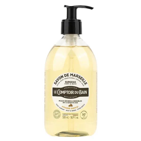Composé de 97% d'ingrédients d'origine naturelle, le Savon Surgras parfum Amande douce extra-doux nettoie efficacement le corps et les mains tout en respectant la peau. Sa formule sans huile de palme, enrichie en huile d’olive, actif hydratant* et apaisant, laisse sur la peau un film protecteur et préserve toute sa douceur et son confort. Parfum d'amande douce aux notes poudrées et réconfortantes pour une peau délicatement parfumée. Convient aux peaux sensibles et délicates et à un usage répété tout au long de la journée. Appliquez sur la peau humide, faites mousser puis rincer. Testé sous contrôle dermatologique. Flacon en plastique 50% recyclé