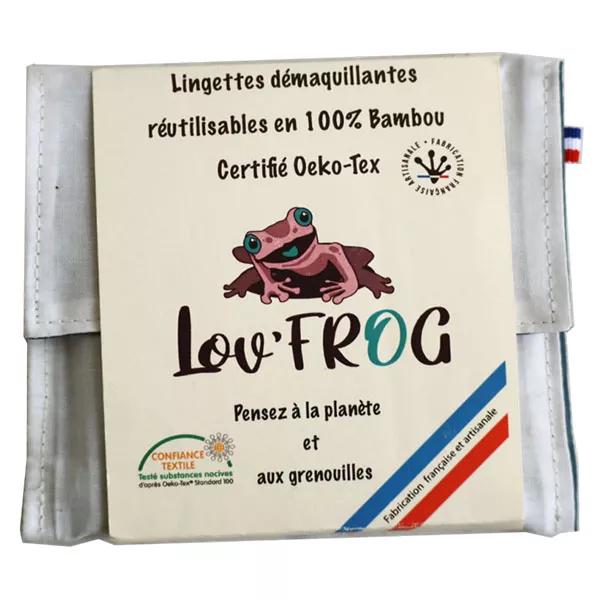 Ces 4 Lingettes Démaquillantes Bambou Bio sont fabriquées en France de manière artisanale ce qui renforce l'esprit de proximité et d'écologie prôné par la marque Lov'Frog.