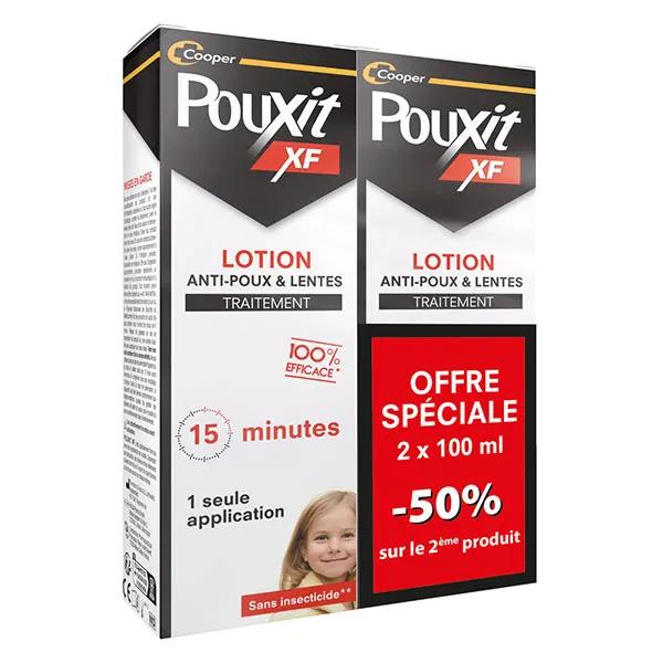 Lozione anti-pidocchi e lendini Pouxit Extra Forte Agisce in 1 sola applicazione da 15 minuti Confezione da 2 x 100 ml