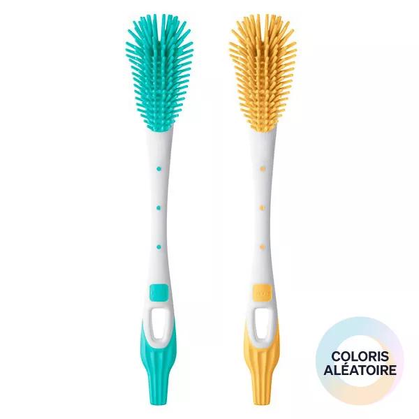 Ce goupillon a une action 2 en 1. Il est doté d'une double brosse pour nettoyer biberons et tétines.