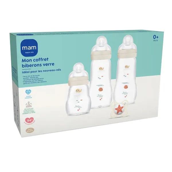 Le Coffret Naissance Biberons Verre de MAM est un kit de naissance.