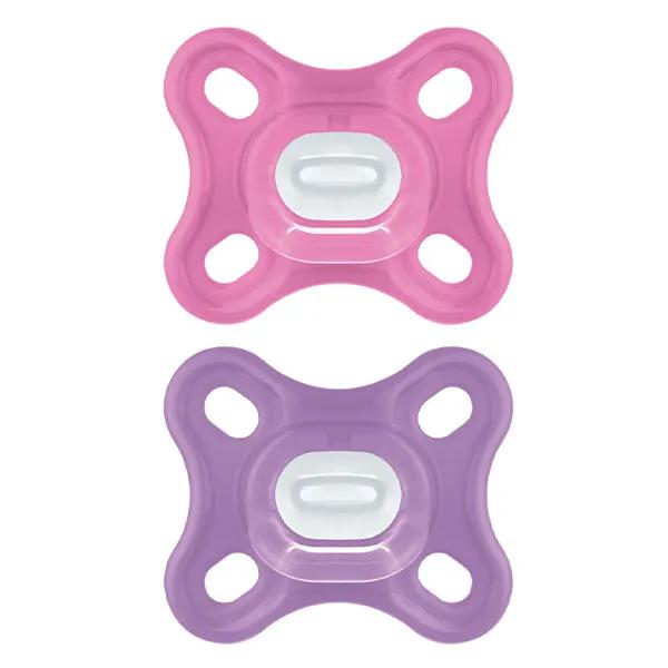 MAM Comfort Sucette Physiologique +0m Lot de 2 + Boîte de Conservation a été spécialement développée en collaboration avec des experts médicaux pour répondre aux besoins du nouveau-né :