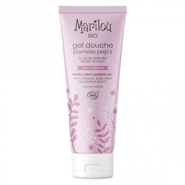 Descrizione ico-chevron-down Marilou Bio Gel Douche Pomelo Pep's 200ml nettoie la peau tout en douceur, enrichi à l'Aloe Vera hydratante et réparatrice pour la peau.