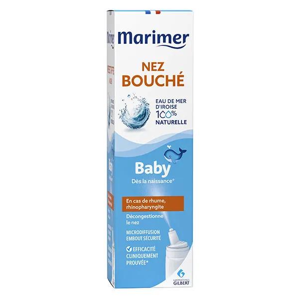 Spray Nasale Marimer Baby 100 ml, contiene acqua di mare proveniente dal Parco Naturale Marino di Iroise. Ricco di sali minerali e oligoelementi marini, aiuta a decongestionare il naso e a facilitare l'evacuazione delle secrezioni nasali grazie alla sua concentrazione ipertonica (22 g/L) e può essere utilizzato fin dalla nascita (esclusi i neonati prematuri). Consigliato per raffreddore, rinofaringite, rinite e rinosinusite acuta, deterge la mucosa nasale ed evacua virus, batteri e allergeni contenuti nelle secrezioni, fluidifica le secrezioni nasali e ne facilita l'eliminazione, migliorando il comfort respiratorio giorno e notte. La sua microdiffusione è adatta ai neonati e consente un'applicazione delicata e uniforme dello spray sulla mucosa nasale. L'ampia punta di sicurezza garantisce una somministrazione facile e sicura ai neonati fin dalla nascita. Per evitare qualsiasi rischio di contaminazione esterna e garantire la protezione della soluzione, lo spray è dotato di una valvola di non ritorno appositamente progettata.Indications