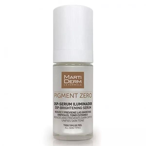 MartiDerm Pigment Zéro Sérum Illuminateur 30ml unifie le teint de la peau, et réduit et prévient les taches grâce à ses actifs dépigmentant qui agissent uniquement là où la production de mélanine est excessive.Sa texture légère facilite l'absorption et ses actifs offrent une haute tolérance cutanée.Il donne à la peau un aspect plus lumineux et un teint homogène.Il prévient et traite les hyperpigmentations cutanées, en réduisant les taches grâce à ses actifs dépigmentants sélectifs, comme l'hexylrésorcinol, l'acide phytique et la Bellis perennis L. Il unifie et illumine le teint.Indications