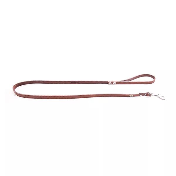 Adapté au bien-être des chiens, la laisse en cuir de couleur marron est fabriquée à partir de cuir classique coupé franc, non doublé, avec tannage végétal et bouclerie nickelée. Un montage au rivet et un mousqueton carabine qui en font une laisse de première qualité !