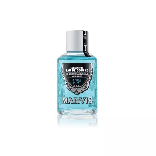Descrizione ico-chevron-down L'Eau de Bouche Menthe Anis 120ml du laboratoire Marvis vient compléter votre routine brossage pour une hygiène buccale impeccable.