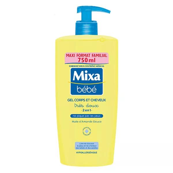 FORMULE TRÈS DOUCE :Le Gel Très Doux Corps et Cheveux Mixa Bébé a été spécialement formulé pour la toilette quotidienne des bébés et des peaux délicates.- Sa base lavante très douce nettoie en un seul geste les cheveux, le visage et le corps.- Enrichi en huile d’amande douce (nourrissante, protectrice et adoucissante), il préserve la barrière protectrice de la peau.RESULTAT :Votre bébé est parfaitement nettoyé, sa peau est douce et hydratée et ses cheveux sont soyeux.LES GARANTIES MIXA BÉBÉ :Formulé sous contrôle médical, le Gel Très Doux Corps et Cheveux est hypoallergénique, c’est à dire formulé pour minimiser les risques d’allergie. Son pH est neutre pour la peau et il ne pique pas les yeux.Tous les soins Mixa sont FORMULÉS ET TESTÉS SOUS CONTRÔLE MÉDICAL pour vous assurer sécurité et tolérance.