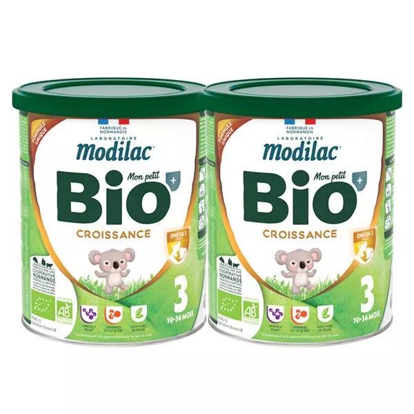 AVIS IMPORTANT: Le lait maternel est l’aliment idéal du nourrisson. Modilac Mon Petit Bio+ Croissance peut le compléter ou le remplacer si vous ne l’allaitez pas. Modilac Mon Petit Bio+ Croissance répond aux besoins du nourrisson jusqu’à 36 mois. Suivez les conseils de votre médecin pour l’utilisation d’un lait infantile et pour l’alimentation de votre bébé.