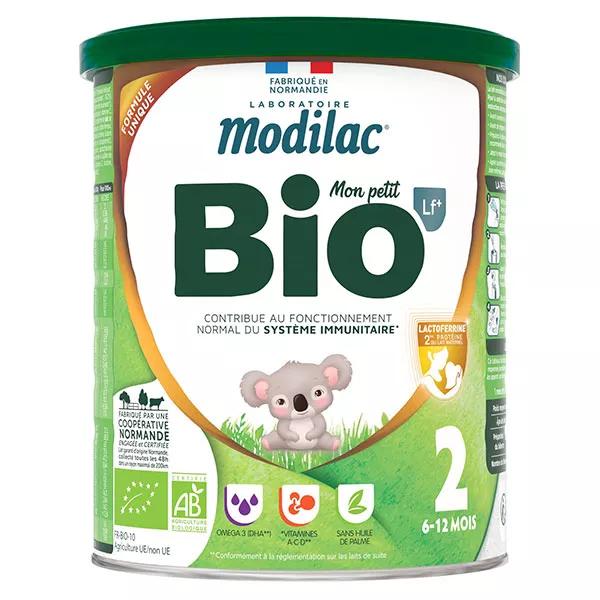 AVIS IMPORTANT: Le lait maternel est l’aliment idéal du nourrisson. Modilac Bio Lf+ 2e âge peut le compléter ou le remplacer si vous ne l’allaitez pas. Modilac Bio Lf+ 2e âge répond aux besoins du nourrisson jusqu’à 12 mois. Suivez les conseils de votre médecin pour l’utilisation d’un lait infantile et pour l’alimentation de votre bébé.