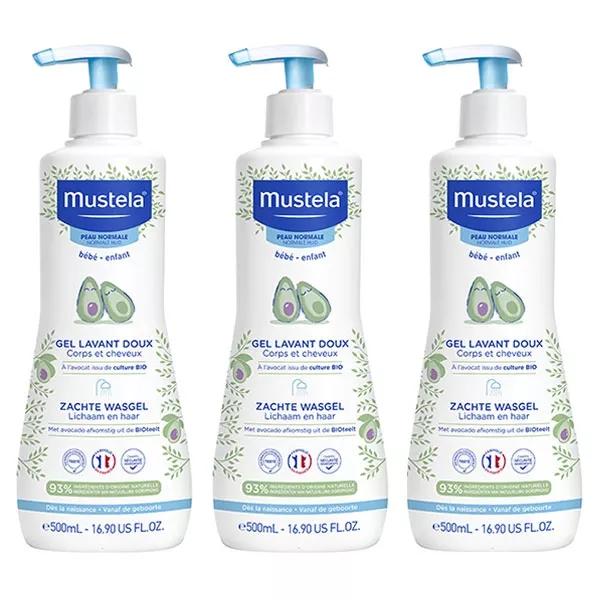 Mustela Bain & Toilette Gel Lavant Doux 500ml à l'avocat bio nettoie efficacement et en douceur la peau et le cuir chevelu des bébés et enfants. Il apaise et compense les effets desséchants du bain, et laisse une odeur unique sur la peau de votre bébé.