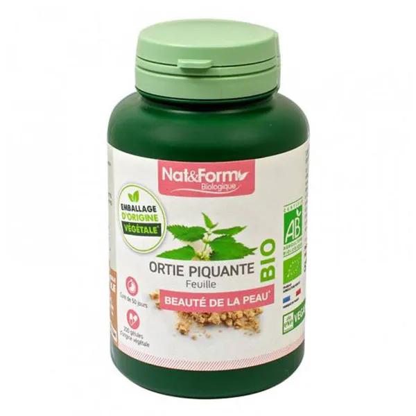 Nat & Form Foglia di Ortica Pungente è un integratore alimentare in capsule d'origine vegetale composte da polvere di foglia di ortica pungente biologica, certicato AB.