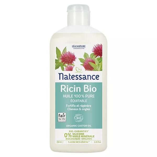 Natessance Huile de Ricin Bio 250ml est une huile recommandée en soin capillaire nourrissant et regénérant des cheveux secs et abîmés, elle favorise la pousse des cils, sourcils et cheveux.