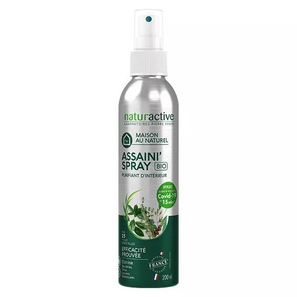 Naturactive Assaini'Spray Bio 200ml est une formule aux 25 huiles essentielles bio connues pour leurs vertus assainissantes, à vaporiser dans l'atmosphère.