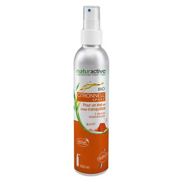 Naturactive Citronnell' Spray Bio 100ml protège des moustiques avec une formule aux 7 huiles essentielles bio (Palmarosa, Citronnelle, Lavandin super, Litsée citronnée, Citron, Lavande, Géranium).