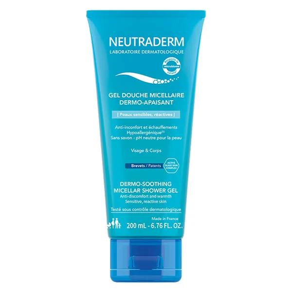 Descrizione ico-chevron-down Neutraderm Gel Douche Micellaire Dermo-Protecteur 200ml nettoie en douceur les peaux réactives et sensibles de toute la famille dès la naissance.