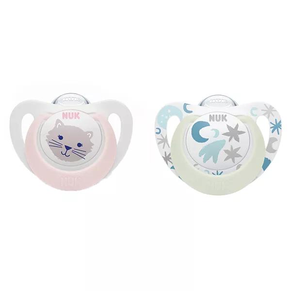 Nuk Ciuccio Starlight Silicone +0m Gatto Rosa Stelle Lotto di 2
