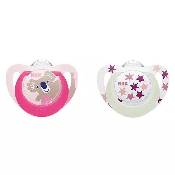 Nuk Ciuccio Starlight Silicone +18m Koala Rosa Stelle Lotto di 2