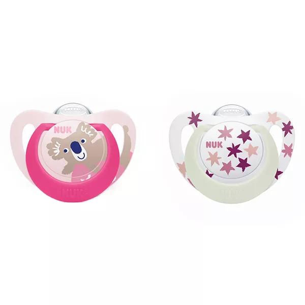 Nuk Ciuccio Starlight Silicone +6m Koala Rosa Stelle Lotto di 2
