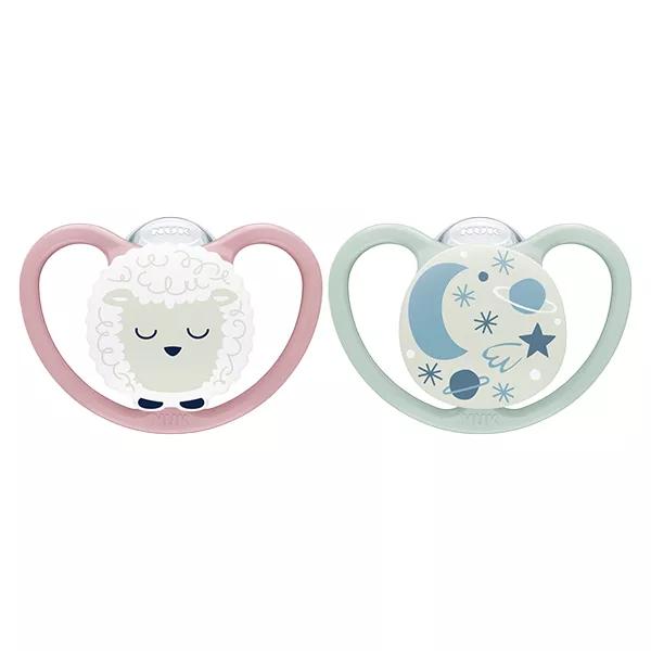 Nuk Space Night Ciuccio Fisiologico Rosa Verde +18m Lotto di 2