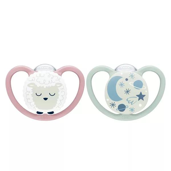 Nuk Space Night Ciuccio Fisiologico Viola Grigio +0m Lotto di 2