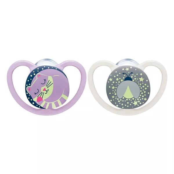 Nuk Space Night Ciuccio Fisiologico Viola Grigio +6m Lotto di 2