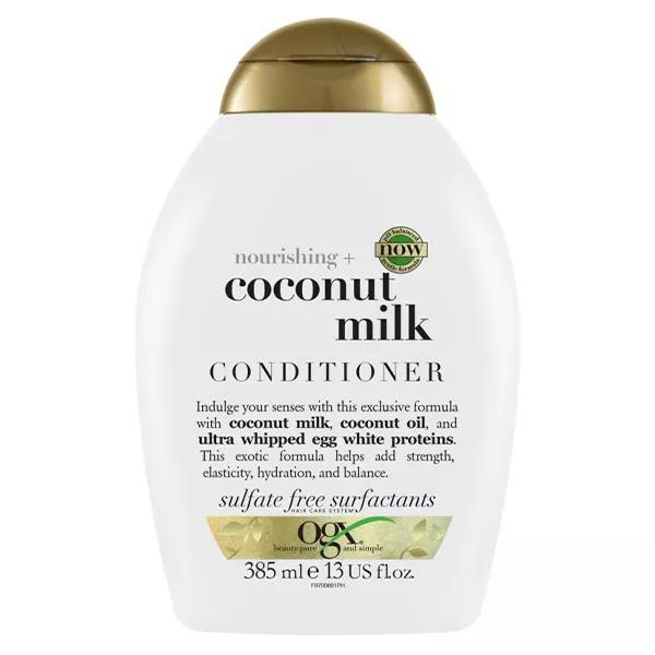 Descrizione ico-chevron-down OGX Après-Shampoing Lait de Coco 385ml c'est l'impression d'être en vacances sous les tropiques ! Formule voluptueusement hydratante et onctueuse.
