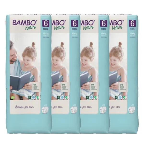 I pannolini Bambo Nature taglia 6 16+kg Tall Pack 40 unità - Confezione da 4 sono pensati per bambini di peso superiore a 16 kg. Ecologici e realizzati con materie prime sostenibili, garantiscono comfort e sicurezza grazie a: nucleo ultra assorbente con effetto antiodore, barriere rinforzate anti-perdita, morbido pile traspirante, indicatore di umidità.