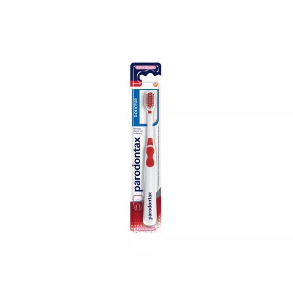 Descrizione ico-chevron-down Parodontax Brosse à Dents Douceur Extra Souple est spécialement conçue pour nettoyer en douceur vos dents et gencives car ses brins extra fins éliminent la plaque dentaire, tout en respectant la sensibilité des gencives.